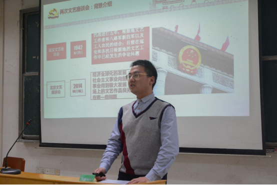 随后,13名学生代表依次上台发言。他们回顾历史、立足现实、放眼未来,对习近平的思想文化观进行了深刻剖析和探讨。其中,本科生曹喜庆对习近平妇女观的阐释令人耳目一新。她首先对妇女观的思想理论渊源和中共各代领导集体妇女理论进行了回溯,接着展示了习近平的妇女观,在深刻认识习近平文化观的基础上紧扣当代热点。此外,文史直博班汪伟亚浅论习近平的文化观对毛泽东文化思想的继承也同样亮眼。他另辟蹊径,以两次文艺座谈会为例,分析了两者的背景、内容,从细微之处找寻联系,于字句之间对比差异,立意新颖,见解深刻。